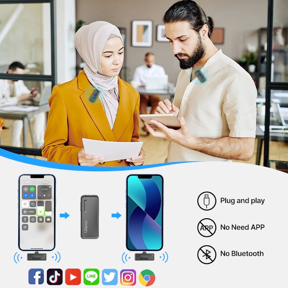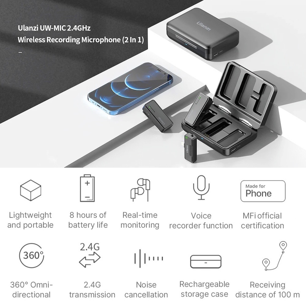 ULANZI UW-MIC 2.4GHz Wireless Microphone Dual Lavalier Mic for Smartphone