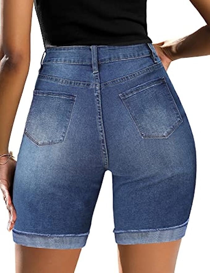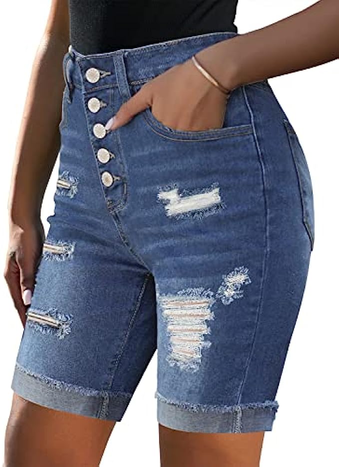 Utyful Women Summer Frayed Ripped Bermuda Shorts Distressed Denim Jeans Short