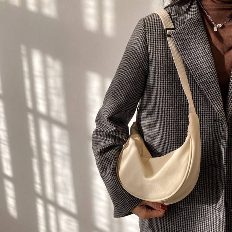 Women Cute Chest Bag Large Capacity Solid Color Travel Crossbody Bag Half Moon Nylon Daily Casual Shoulder Bag