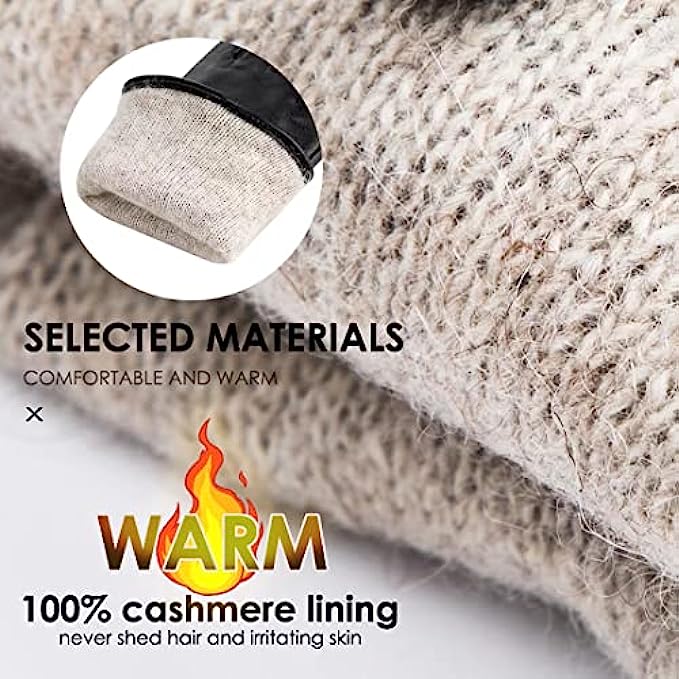 • 1.GENUINE LEATHER GLOVES: Outer are made of premium top layer genuine sheepskin leather with softness of touch, suppleness, strength and lasting comfort. Fully lined with Italian cashmere, let the gloves be your chic cold weather essentials.