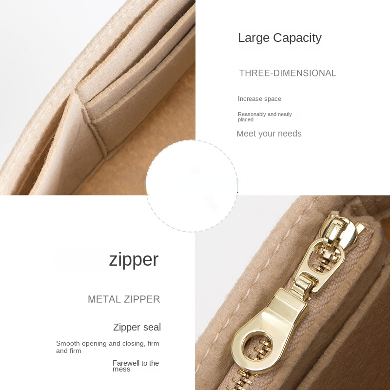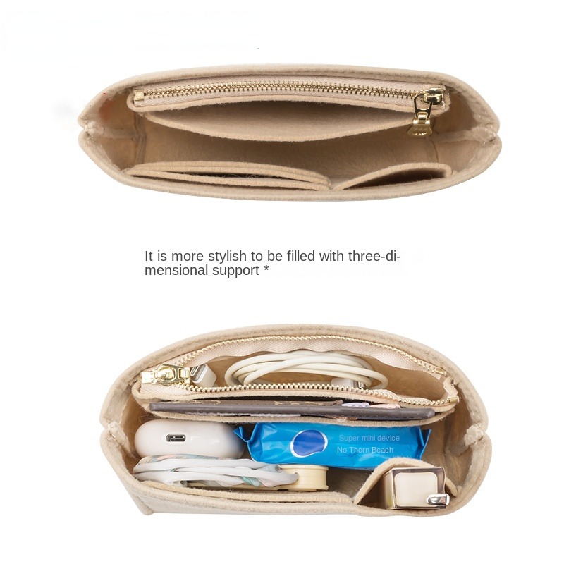 Color: beige, beige Material: felt True to the description: ok The form lining is ok, put it in a Longchamp bag and then stand in a beautiful form, and divided into many compartments for easy storage
