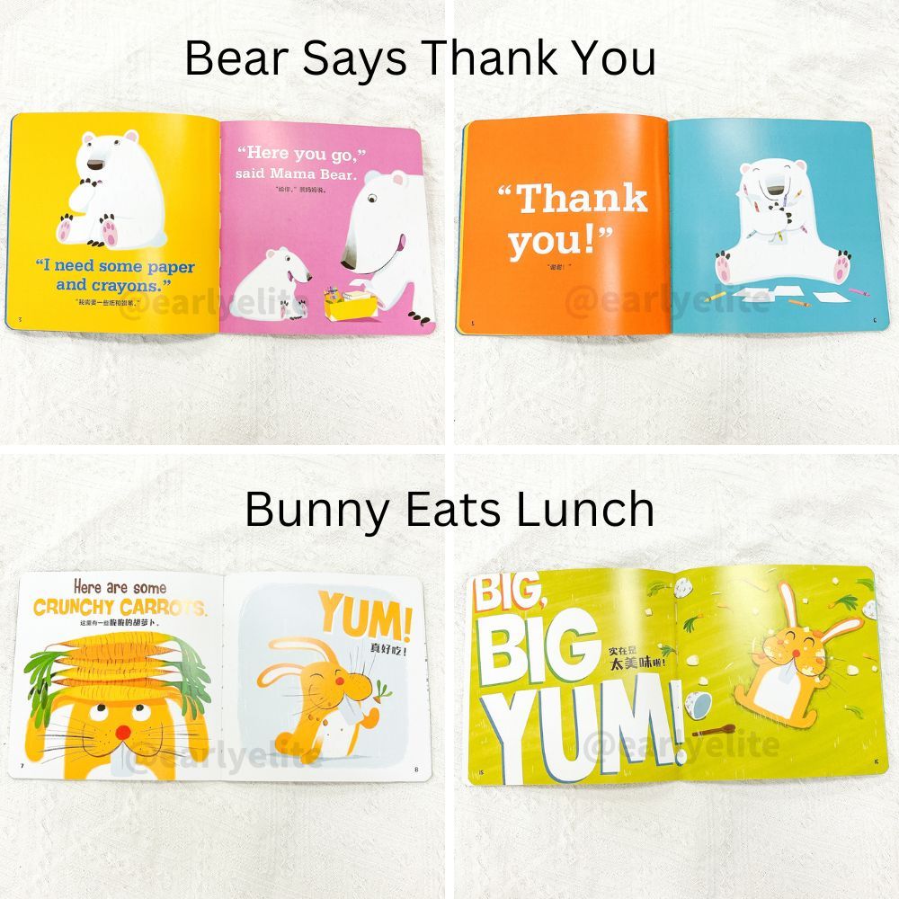 Suitability:3 yr old kids love the book. The words are huge and books contain lots of picture images and simple easy words. Contains English and chinese languages.