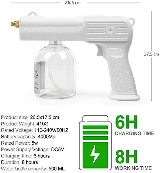 Portable Safety: Our nano atomizer can adjust the amount of spray by turning the switch on the handle. 2M effective range! No warm up time required, start button starts.Low temperature atomization design.No preheating, fast spraying.