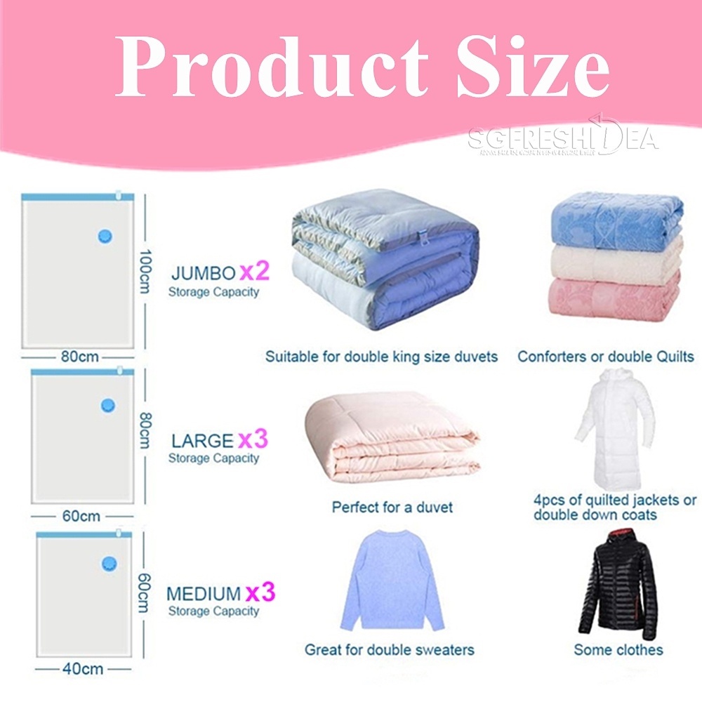 (HOME+) Vacuum Sealer Packing Bag Storage Compression For Clothes-Vacumn Vaccum Ziplock Travel