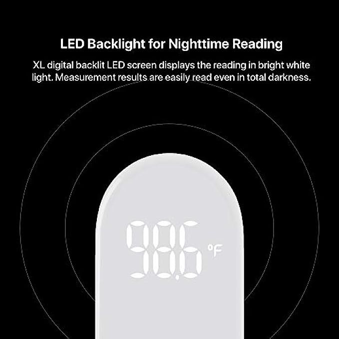 • Simple, Fast, Clear, And Quiet: With an intuitive single-button control design, the thermometer reads and shows the temperature in just one second on its easy-to-read, extra-large LED display, even in total darkness. When the temperature is read, the device gives a gentle vibration notification to the holding hand—no beeps or buzzes.