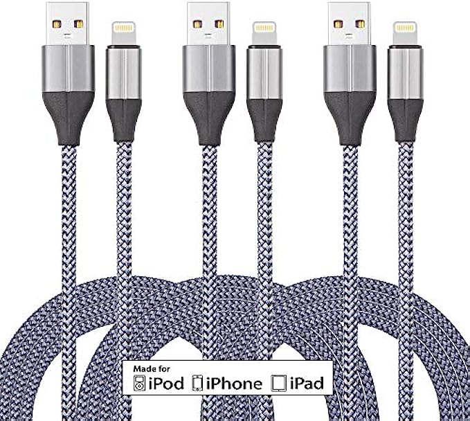 iPhone Charger Cable (3 Pack 10 Foot), [MFi Certified] 10 Feet Nylon Braided Lightning Cable, iPhone Charging Cord USB Cable Compatible with iPhone 11/Pro/X/Xs Max/XR/8 Plus /7 Plus/6/ iPad