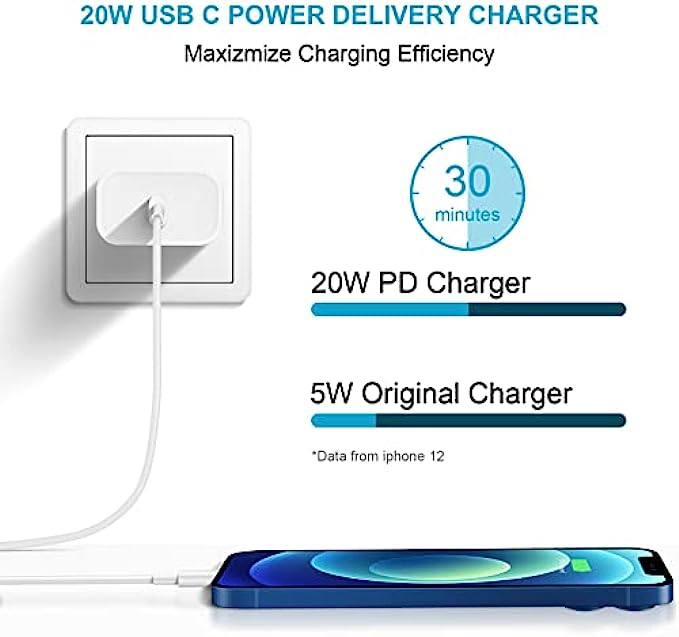 【INCORIC PD 3.0 Fast Charger for iPhone】 iPhone Fast Charger equipped with 20W PD 3.0 USB Type C power delivery wall plug, PD 3.0 Quick-Charge USB C port provides Max 20W output power, charge your device up to 3x faster than original 5W charger,charging your iPhone 13 up to 50% in just 30 minutes, saving over 1.5hrs for you.