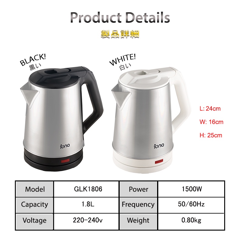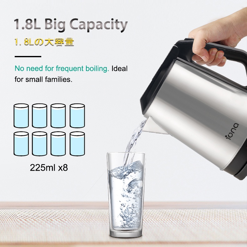 IONA 1.8L Electric Kettle Stainless Steel Water Boiler | Kettl Electric 热水壶 熱水壶 - GLK1806