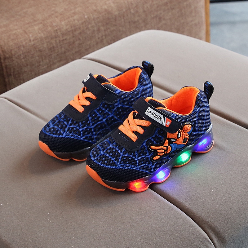 Kids Spiderman Shoes Boys Cartoon Sneakers LED Shoes Cool Superman Shoes