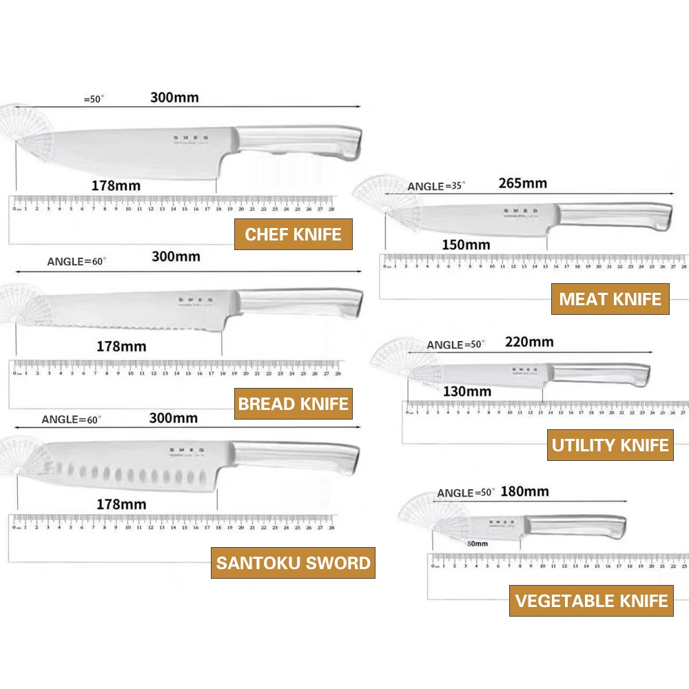 Appearance:pretty Quality:not yet use Performance:not yet use Pretty set. But not sure really original. Anyway as long knives are sharp to use, real smeg or not, will not really matter to me !