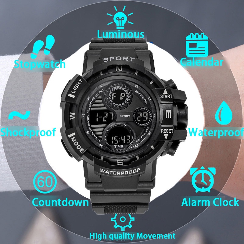 Material: strap material and case material = silicone True to description: True to description Color: blue color blue Nice watch, with time display, minutes, seconds, dates