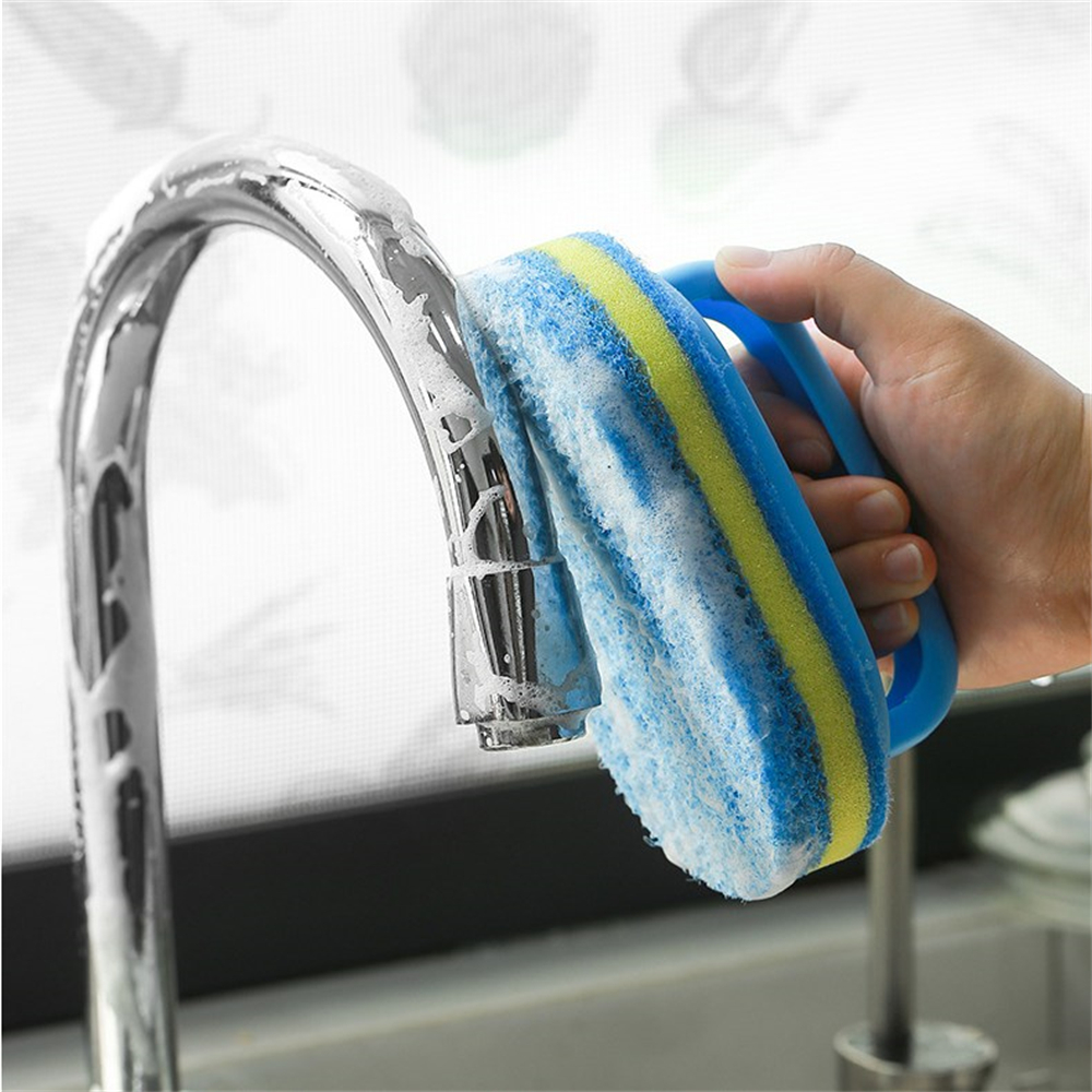 Multifunctional Kitchen Bathroom Strong Brush Plastic Handle Sponge Bottom Cleaner Tools