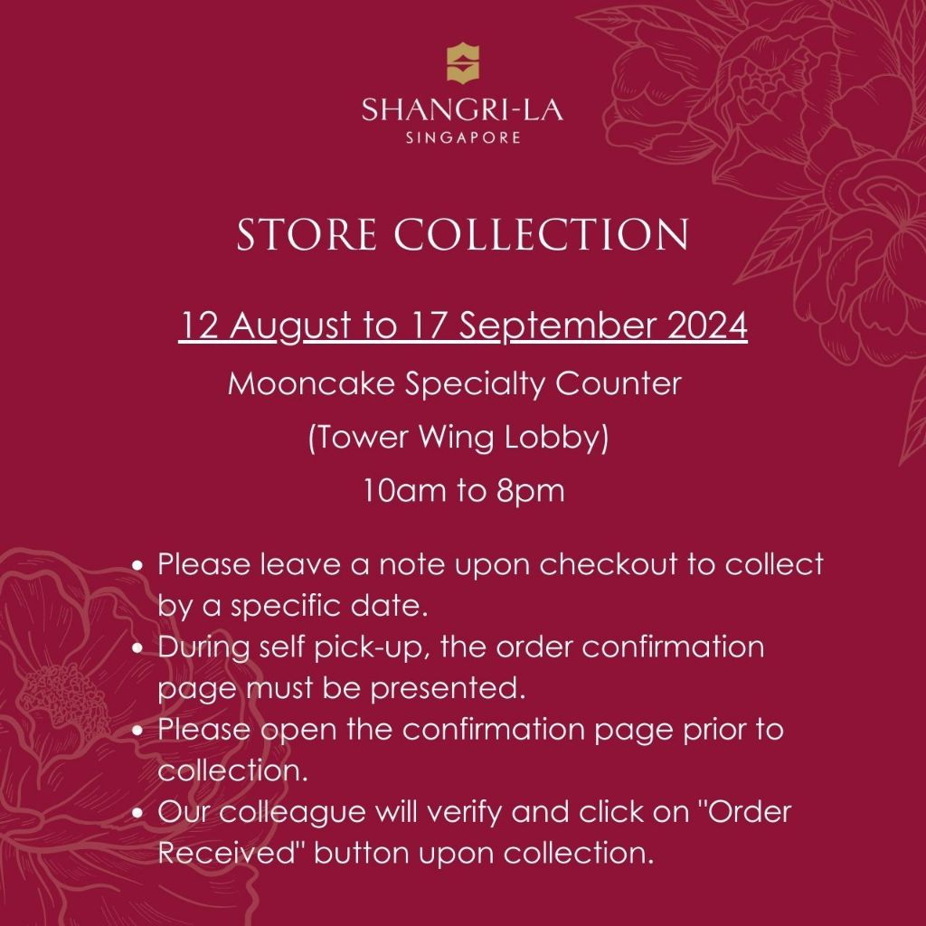 Quality:Very good Taste:Very nice Collection was impressively fast. Ordered on 9/8/24 and it was ready for collection on 11/8/24. This was meant for a foreign guest who is leaving on 13/8/24 morning flight and so the speed is greatly appreciated. Thank You very much Seller and Shangri-La for the fast work and great coordination.
