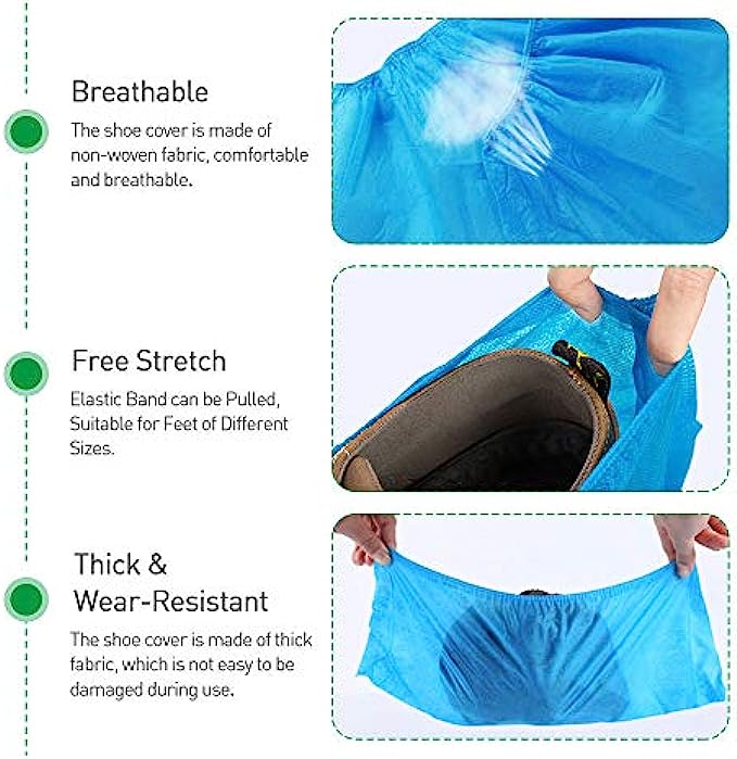 Extra thick and durable: Made of 3.5G High-Quality Non-Woven Fabric, resistant to tearing and rupturing. Non-slip, breathable, prevent dust from your shoe covers
