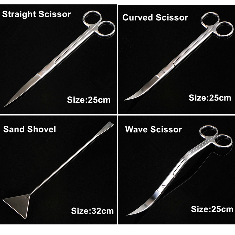 Stainless Steel Aquarium Water Plant Tool Tweezers Scissors Spatula Fish Plant Tank Aquarium Cleaning Accessories