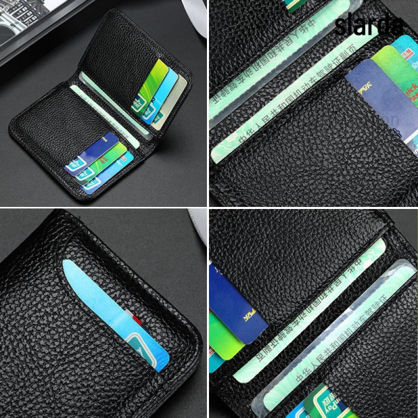 Material Quality:feels ok Colour:black Received the item as described. Relatively fast delivery with no damages observed. Cannot really put many cards and will bulge out. So can put limited.