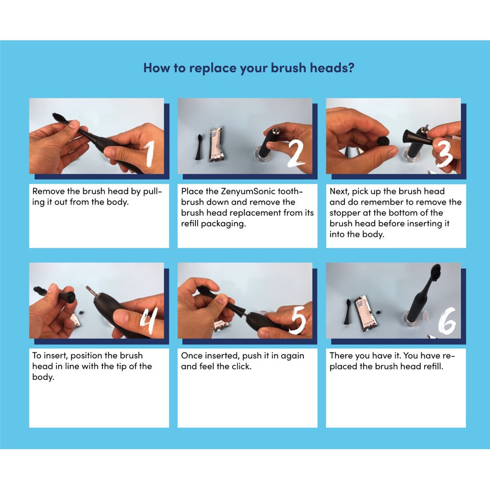 Zenyum Sonic Electric Toothbrush Black Refill Brush Heads - Pack of 3