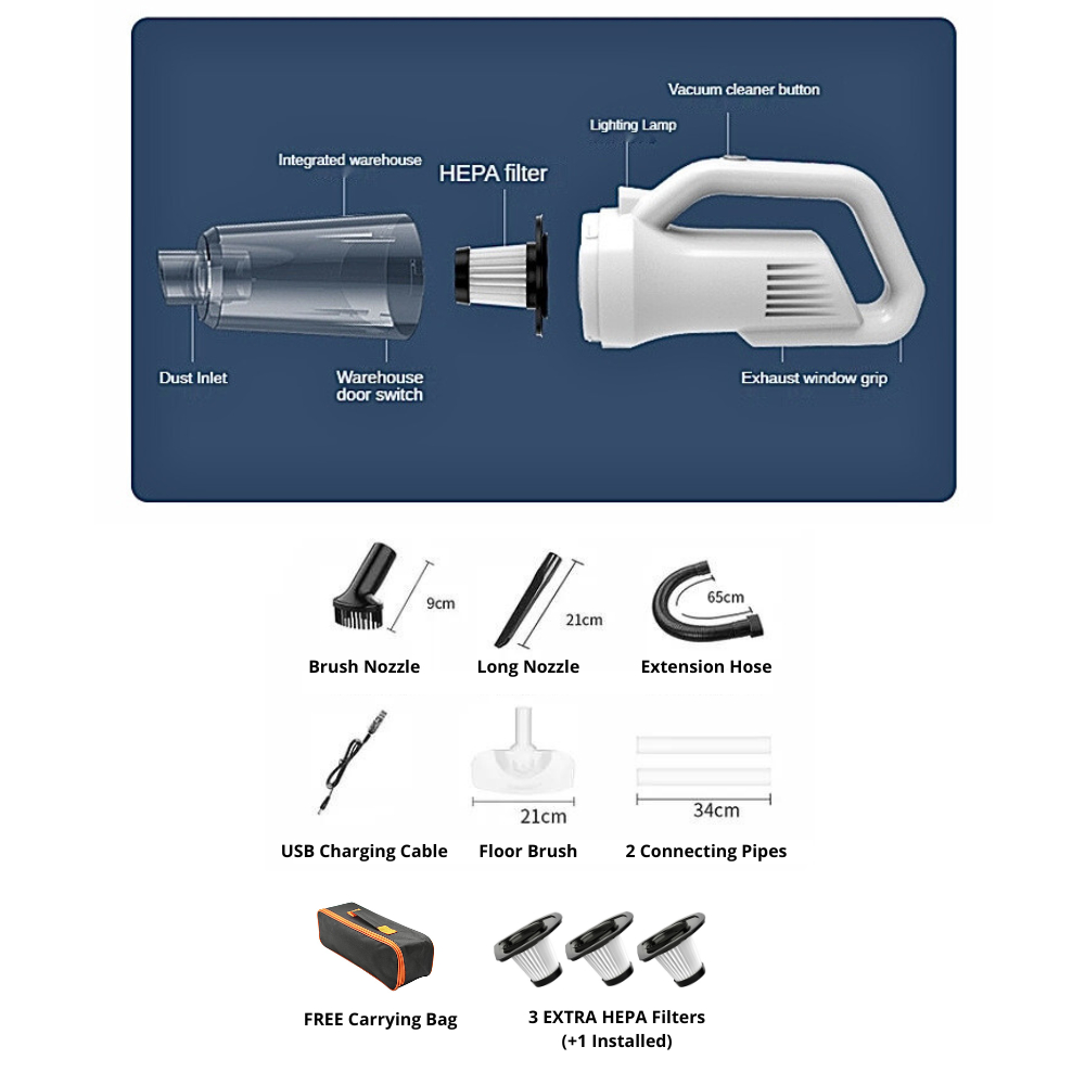 (VIP Retailer) Cordless Vacuum Cleaner | Car Home | Wet & Dry Strong Suction 12000Pa Handheld Vacuum Cleaner 无线吸尘器 无线吸尘机