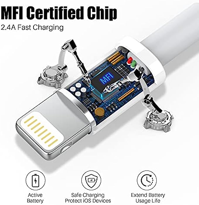 • 【MFi Certified iphone charger】: Each cable contains an authorization chip issued to ensure 100% compatibility with iPhone.ensures that your lightning devices are loaded and charge safely and faster at maximum speed.