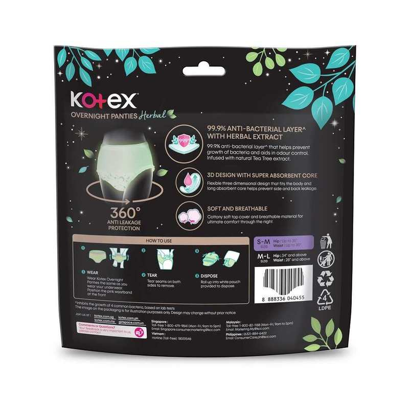 [CARTON DEAL]KOTEX Regular/Herbal Overnight Panties Sleepwell 360° AntiLeakage Protection(2pcs/pk) Panty Sanitary Pad