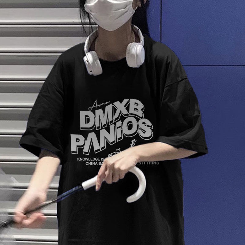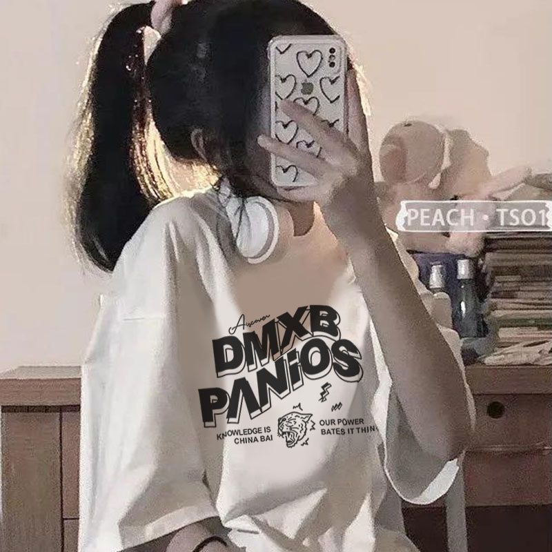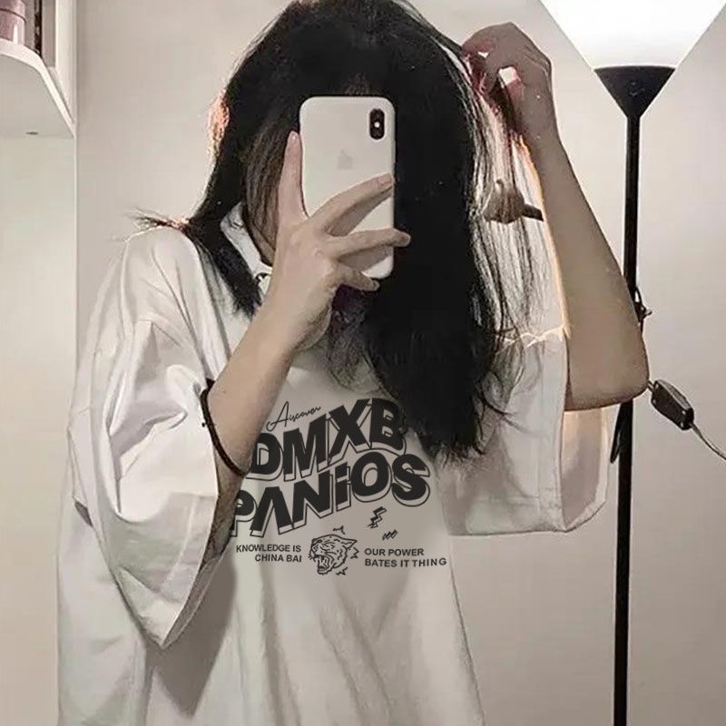 【草莓兔】短袖t恤女 圓領 ins風韓版上衣 夏季短袖 寬鬆 日系簡約 情侶上衣 印花半袖上衣 潮流中長款上衣
