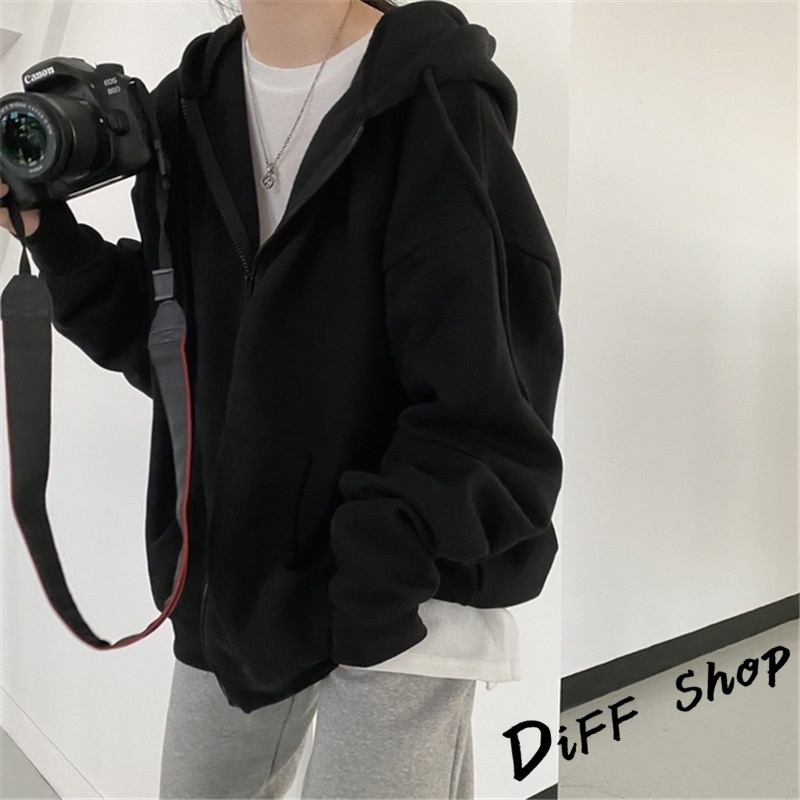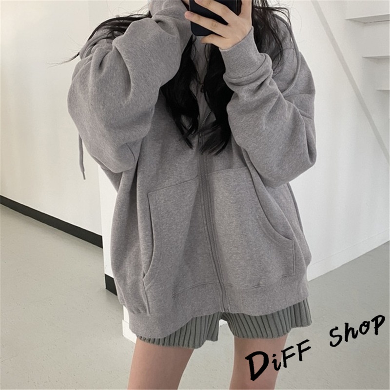 【DIFF】韓版寬鬆休閒內刷毛連帽外套 上衣 女裝 衣服 外套 薄外套 罩衫 防曬外套 長袖上衣【J32】