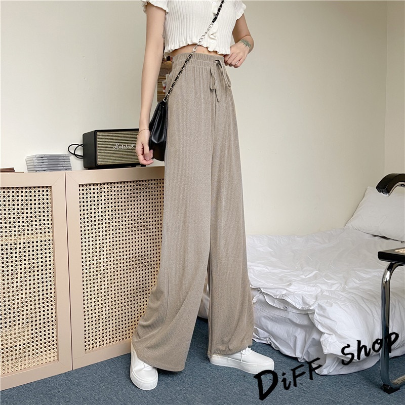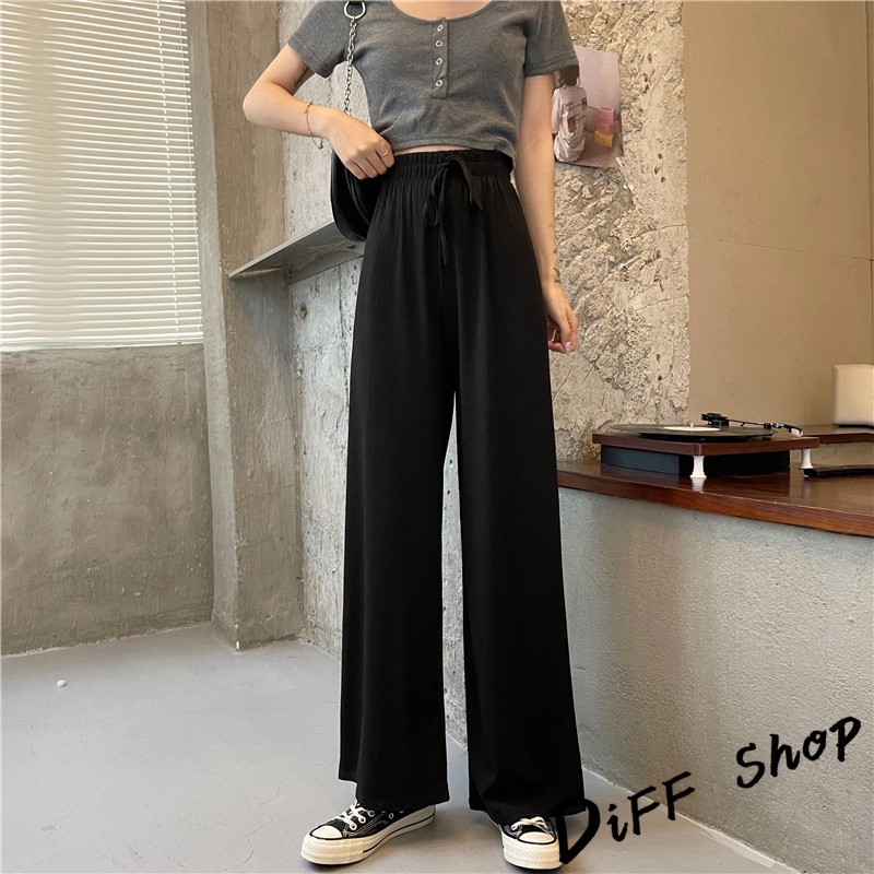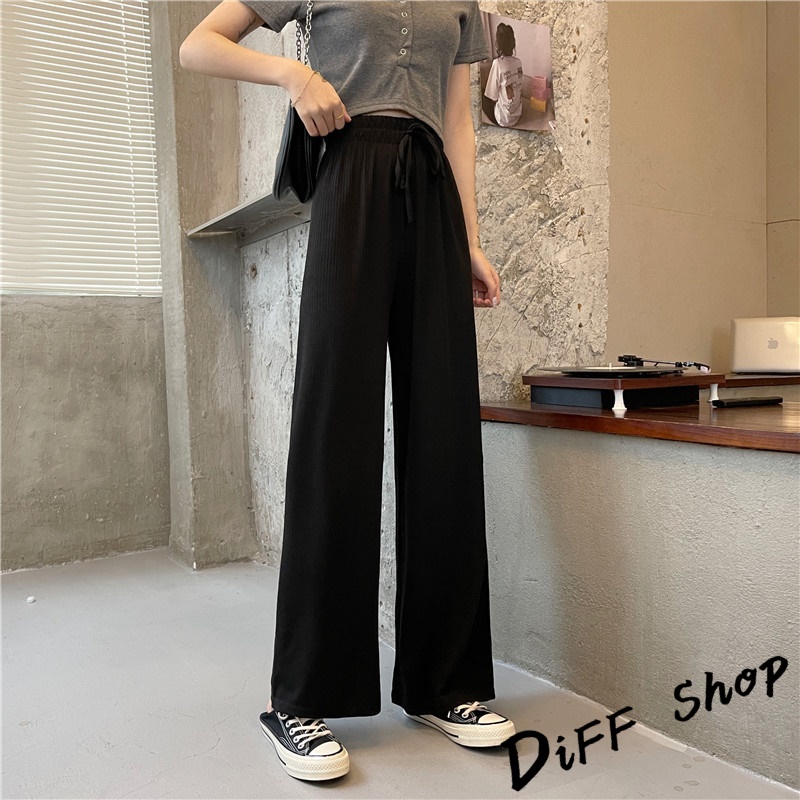 【DIFF】韓版直筒顯瘦高腰休閒寬褲 拖地褲 褲子 長褲 休閒褲 女裝 工裝褲 落地褲【P115】