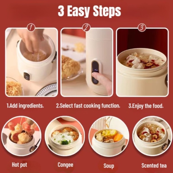 【SG STOCK】Mini multi-function electric stew pot portable intelligent slow rice cooker stew porridge soup electric cooker
