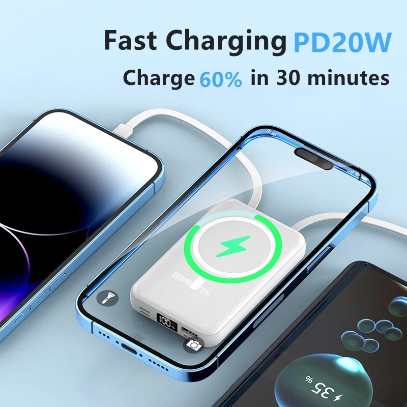 【SG Stock】Magnetic Power Bank Fast Charging With Cable 20000mAh PD20W Portable Wireless Powerbank For iphone Samsun