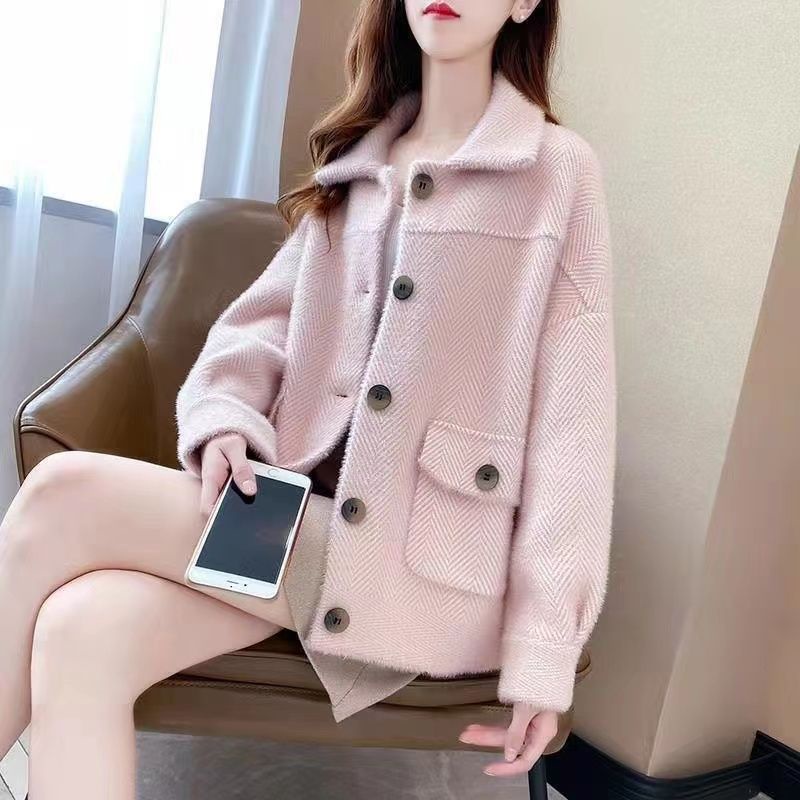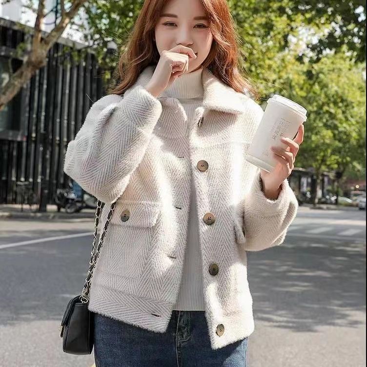 2023 Autumn Winter Women's Clothing Imitation Mink Fleece Short Jacket Versatile Golden