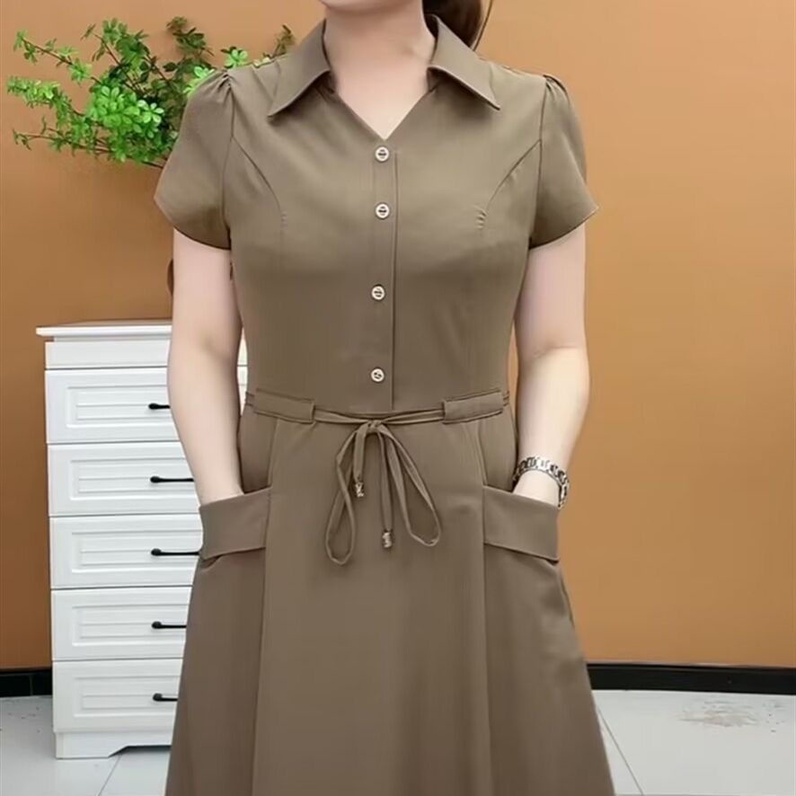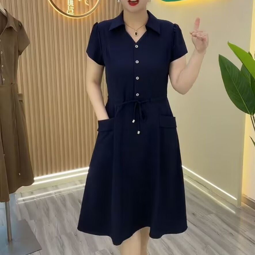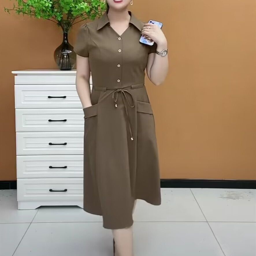 2023 Summer New Style Dress Mom Dress Large Size High-End Fashion Middle-Aged Elderly Women's Clothing with Pocket A-