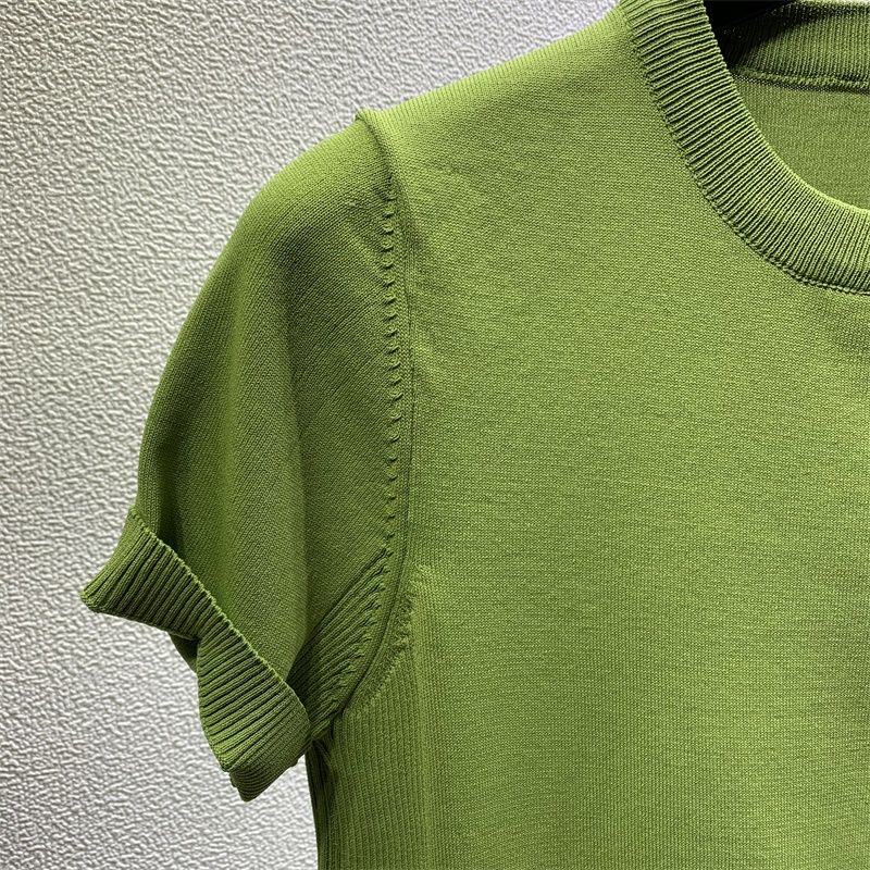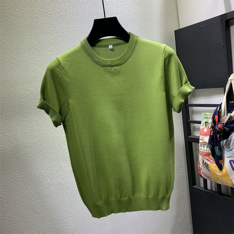 2023 summer round neck solid color ice silk short-sleeved T-shirt male Korean version slim fashion half-sleeved knitted