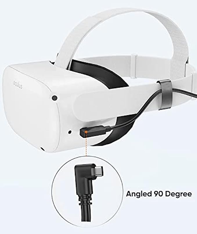 【Flexible and Comfortable Length and 90 Degree Angle】The 16.4ft charging cable gives you unrestricted freedom of movement while immersed in the VR world, bringing you a smoother gaming experience. At the same time, the USB Type C port is designed with a 90° angle, and the included cable holder is specially designed to accommodate our cables, so that you can play games without the interference of cables falling off, so as to improve your comfort.