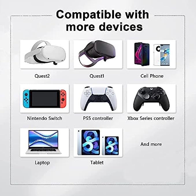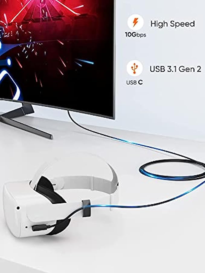 【Latest Upgrade 2 in 1 Link Cable for Oculus Quest 2】link cable for Oculus has great advantages compared with the traditional single interface link cable on the market. Our 2-in-1 link cable provides two device interfaces, supporting USB 3.2 GEN 1 Type A to C and C to C, you can use the cable connecting Quest 2/1 to a gaming PC to play a wide range of Oculus Rift apps and games, suitable for various computers and other device interfaces, such as mobile phones, tablets, printers, etc.