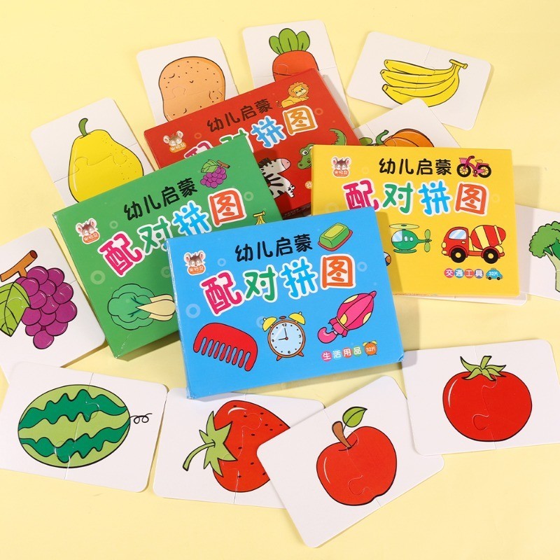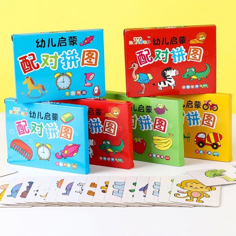 32Pcs Toddler Matching Card - Early Montessori Education Puzzle Toy ​- Cartoon Animal Fruit Truck Pattern ​- Graph Card Matching Game - Children Shape Cognitive Training Jigsaw
