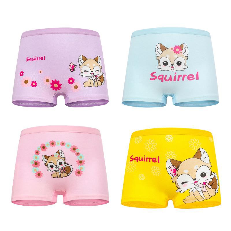 4 PCS In 1 READY STOCK Various Designs Kids Panties Breathable Girl’s Boxer Cartoon Solid Cotton Briefs