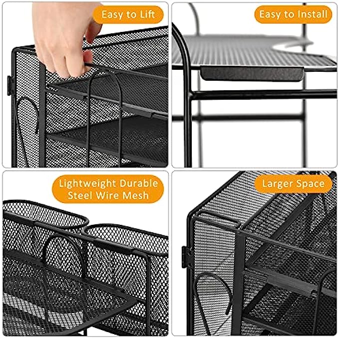 【Sturdy Durable】Paper organizer is made of lightweight durable steel wire mesh and reinforced and reinforced with a solid steel frame,very sturdy and will not fade or rust. Rubber anti-slip feet to prevent it from sliding or scratching surfaces. more stable and durable compared with many other similar products in the market.
