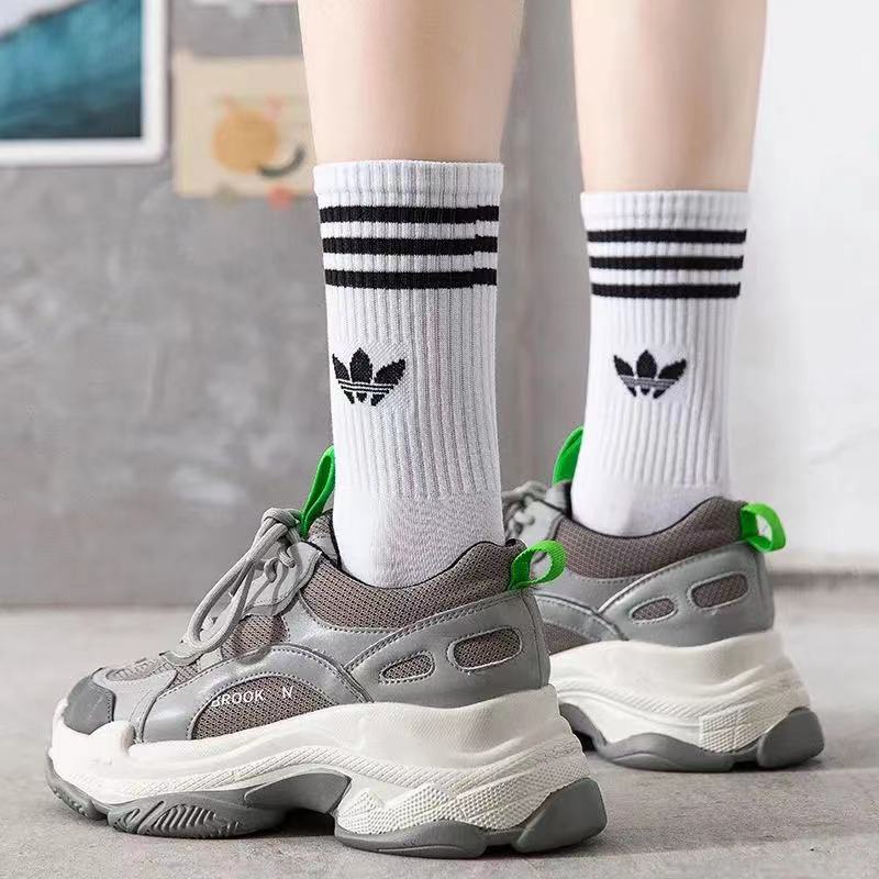 AD#All-match Cotton Calf Socks Clover High Tube Sports Socks Unisex Korean Running Basketball Stockings