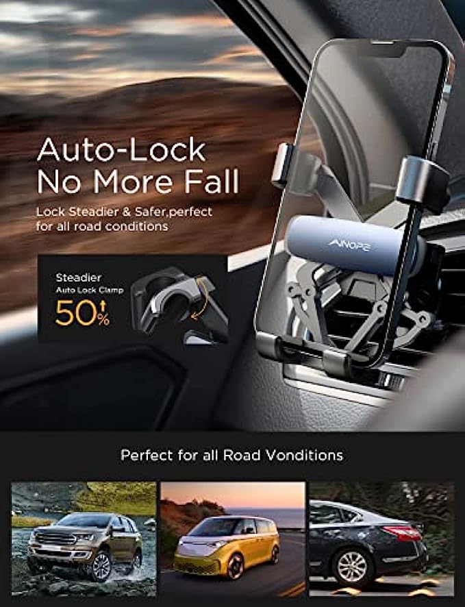 AINOPE Car Phone Holder Mount 2022 Upgraded Gravity Car Phone Mount with Newest Air Vent Clip Auto Lock Hands Free Cell Phone Holder Mount for Car Compatible for iPhone 13 Pro Max & All Phones Bla