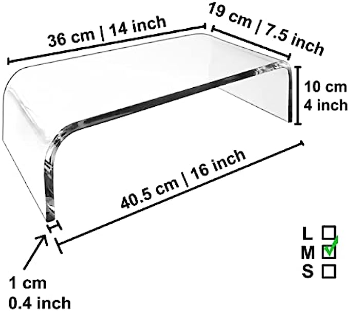 ⭐ MODERN: AMT Acrylic Monitor Stand is construction with smooth edges and a beautiful clear transparent platform, perfect size for any desk. These stands are just the right height and work with any decor. This Acrylic Monitor Stand also wide enough for the keyboard to fit under and makes for quick dusting.