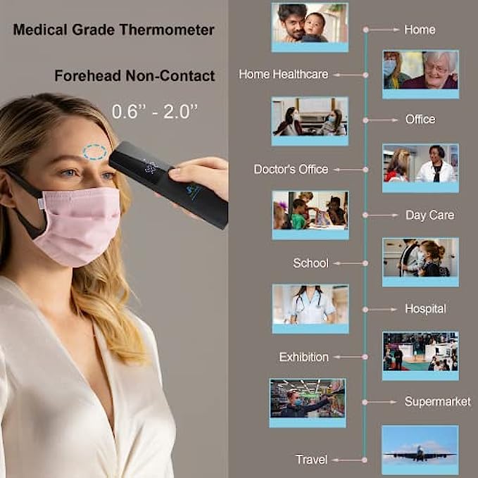SAFE FOR ALL: Our noninvasive, contact-free IR Infrared thermometers are more comfortable, hygienic, and easier to use than rectal, oral, ear, or armpit thermometers; For use on adults, children, toddlers, or infants; Termometro para bebes o adultos; Used by doctors, nurses, and healthcare professionals