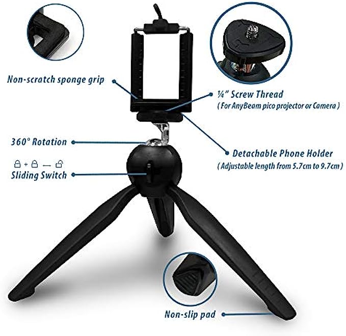 【Universal Compatibility】A universal ¼" screw thread offers great security for pico projectors or cameras. The detachable phone holder allows to mount iPhone and Android phones.