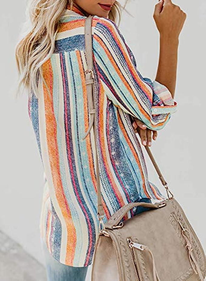 95% Polyester, 5% Spandex Imported Button closure Buttoned front to adjust v neck and comfortable to wear Features: Button down, V neck, Stripes, Color Block,Cuffed Sleeve Match well with jeans, pants, leggings and shorts Suit for daily wear, date, vacation, work, casual,office work If you have any question please feel free to contact us, we will give you the response within 24 hours. Thanks for your support