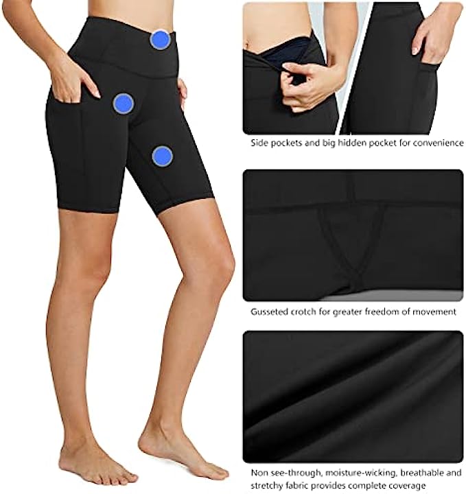 BALEAF Women's 8"/ 7"/ 5" High Waist Biker Shorts Workout Yoga Running Gym Compression Spandex Shorts Side Pockets