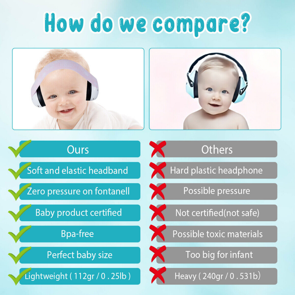 Baby Sound Blocking Earmuffs Hearing Protection with Adjustable Headband Strap for Infant Muffs for Airplane Outdoor