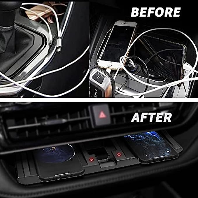 【Product Features】15w wireless fast charger,charging faster &safer, effective charging, wireless charging induction distance ≤6MM, say goodbye to the wiring harness; With dual wireless charging panels, it supports charging two mobile phones at the same time without affecting each other.