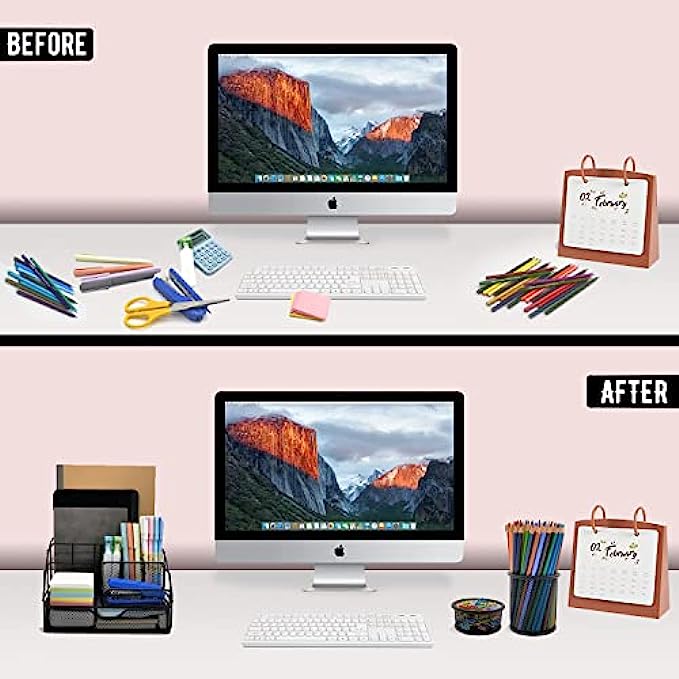 Multi-usage with Creativity: Desk organization uses metal mesh finish design, simple and stylish, easily match other office accessories and surrounding decorations. It is suitable for home, office, classroom, studio, etc; Nice on desktop, living room, bedroom dresser, coffee table, etc.