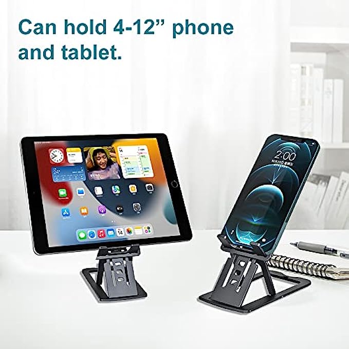 ?[Height and Angle Adjustable] The adjustable phone stand is ergonomically designed. Ten heights and seven angles are easily adjustable, giving you the flexibility to customize the angle to find the most comfortable viewing angle. Reducing the frequency of looking down at your phone screen can help stabilize your posture and reduce stress on your neck and back.
