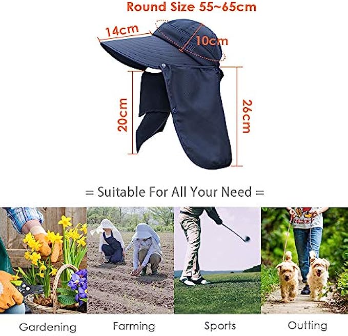 100% Polyester Buckle closure ⊙HIGH QUALITY MATERIALS: Premium polyester fabric. Not only provide UPF 50 protection for sun burn at outdoor activities, but also a great precaution at rainy days. ⊙360° PROTECTION: Comes with face and neck flap, full protection from the blazing sun. Extra wide brim provides wider shade but won’t block viewing. ⊙MULTI-FUNCTIONAL: Detachable top and flaps. Providing multiple wearing options to fit different needs. Light weight design, easy to carry around. Perfect for all kinds of outdoor activities like hiking, gardening, fishing. ⊙BETTER DESIGN: Draw string design to keep the hat in position at strong wind or heavy rain. Buckle button for quick releasing and applying. ⊙BEST SERVISES: 30 days no-question-asked money back protection by Yingzhe-International. Worry free purchase.