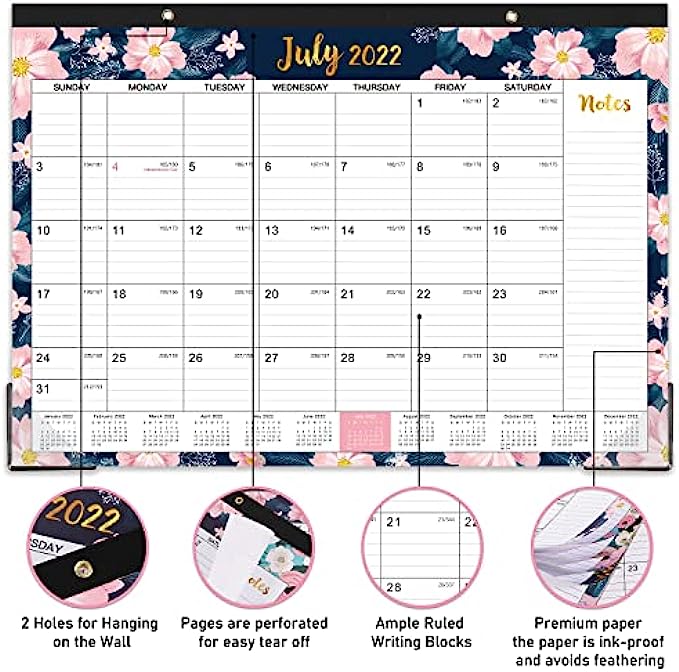 ? SUPERIOR DESIGN OF 2022-2023 DESK CALENDAR - Perforated design allows you to tear off and move to the next spread easily averting disorder. Two transparent corner protectors to keep your pages flat, and two top holes for optional hanging it on the wall.